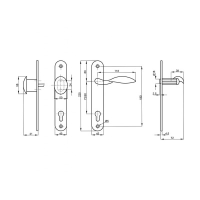 HERMÍNA klika Rustiko na dveře 72mm klíč