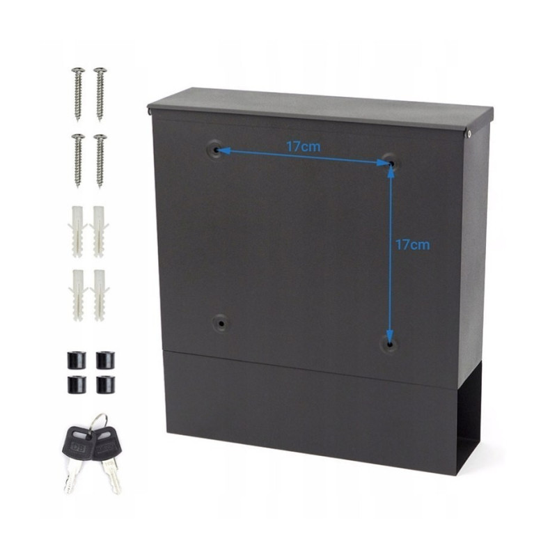 Velikost schránky je určena pro poštu ve formátu A4 / C4. Prodává se v sadě s potřebnými montážními prvky.