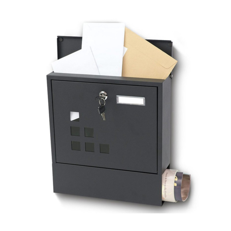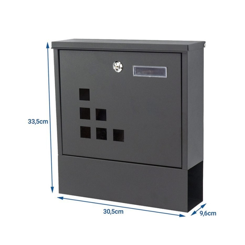 Kvalitní schránka z ocelového plechu v odstínu antracit. Poskytuje pohodlí pro uživatele díky navrženým 3 podélným oknům s možností průhledu dovnitř schránky. Tato funkce umožňuje zkontrolovat obsah schránky, aniž byste ji museli otevírat pokaždé. Jen si zkontrolujete přední část a nezapomenete si tak vyzvednout svou poštu. Schránka je vybavena dolním tubusem pro noviny a letáky (často tištěné ve větším formátu).