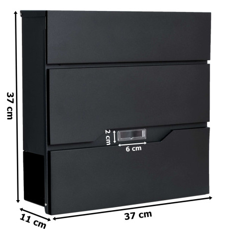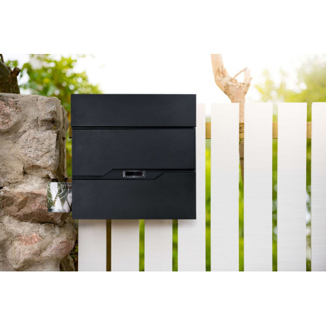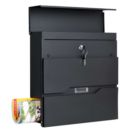 Kvalitní poštovní schránka vyrobená z pozinkované oceli v černé barvě. Vysoká odolnost vůči povětrnostním vlivům. Byla navržena pro pohodlí uživatele as přihlédnutím k současným estetickým trendům. Obsahuje přídavnou přihrádkou na noviny a větší letáky. Horní kryt schránky velmi dobře chrání korespondenci i zámek před vlhkostí a deštěm. Montážní šrouby, jsou v balení - pro rychlou a jednoduchou montáž. Schránka má připravené montážní otvory v zadní části.
