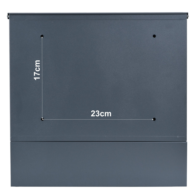 Kvalitní poštovní schránka vyrobená z pozinkované oceli s práškovým nástřikem, díky použitému materiálu je schránka je odolná vůči povětrnostním vlivům. Byla navržena pro pohodlí uživatele as přihlédnutím k současným estetickým trendům. Je vybavena přídavnou přihrádkou na noviny a větší letáky. Horní kryt schránky korespondenci velmi dobře chrání před vlhkostí a deštěm. Sada obsahuje montážní šrouby, přičemž otvory jsou připraveny na zadní straně schránky – pro rychlou a snadnou montáž.