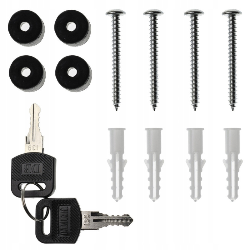 Kotvící hmoždinky s montážními šrouby (4 ks) a dva klíče jsou součástí balení.