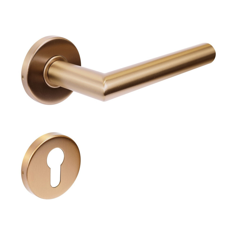Nerezové kování na kulatých rozetách s vratnou pružinou klik, která napomáhá správné funkci při zavření.