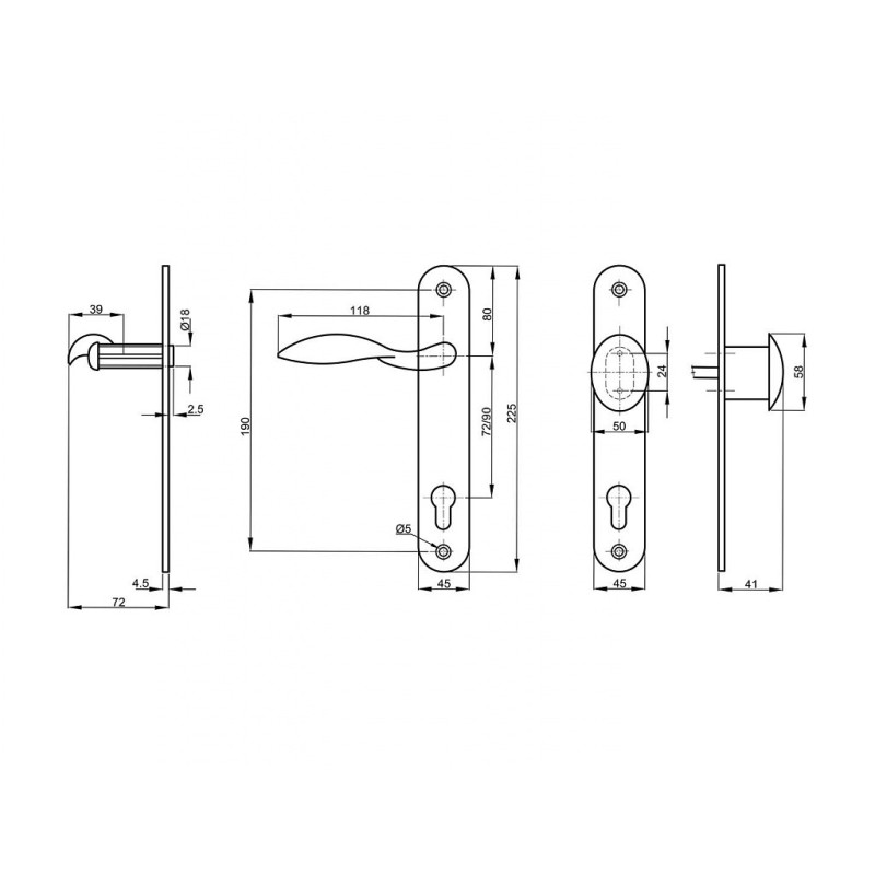 - rozměry: délka štítu 225mm, šířka štítu 44mm, rozteč montážních otvorů 190mm