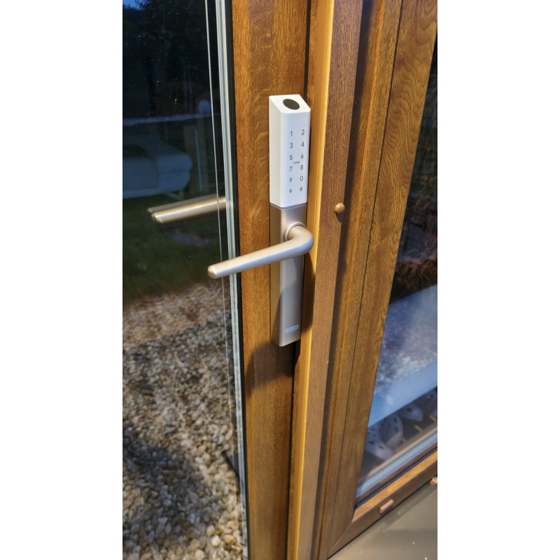 - Možnost autentizace pomocí otisku prstu, IC karty, číselného kódu nebo mobilní aplikace TTLock bez nutnosti použití klasického klíče.