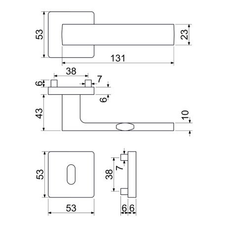 Hliníkové kování na čtvercových rozetách s vratnou pružinou klik