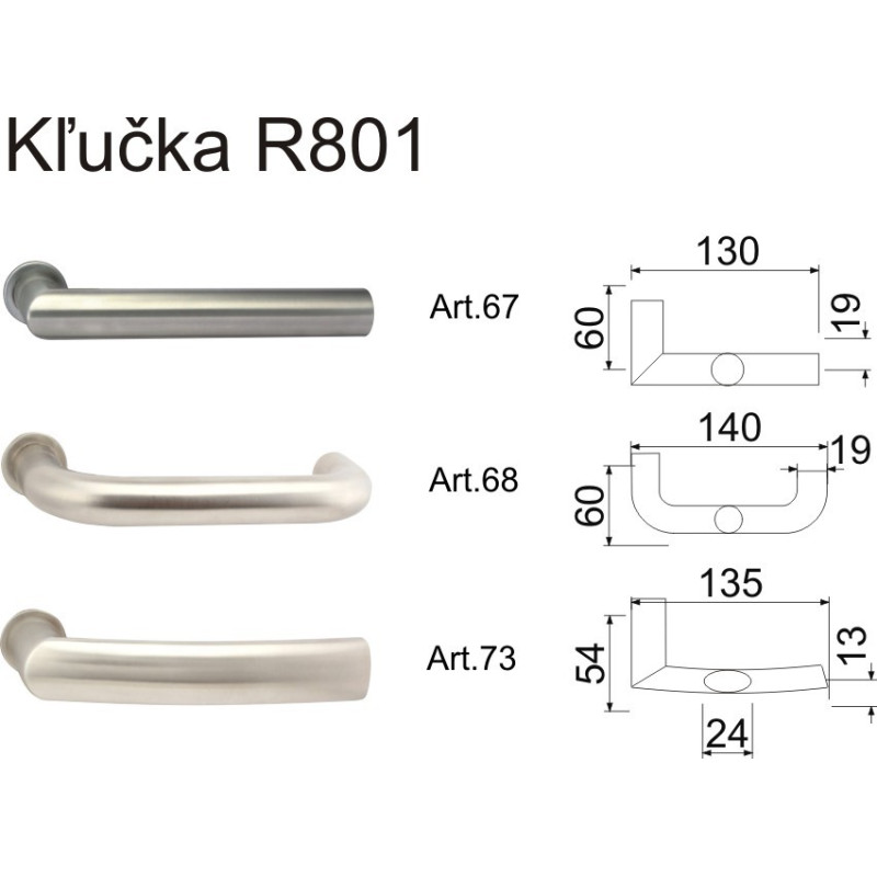 - Rukojeť, výběr ze tří tvarů (články 67, 68, 73).