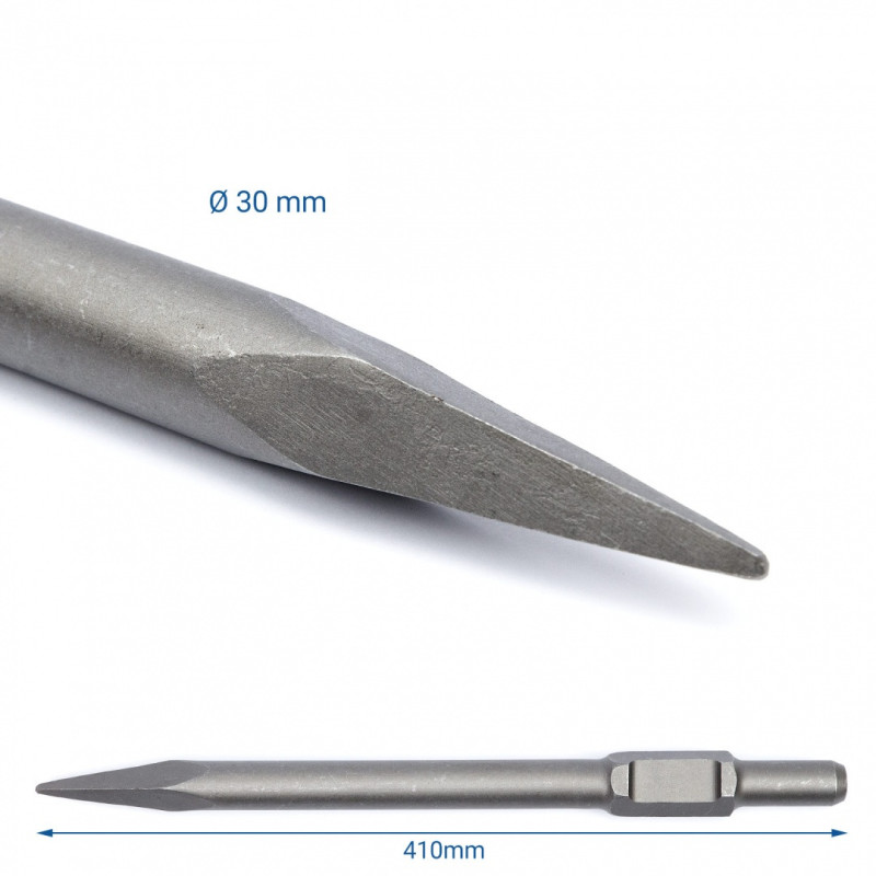 Dláta se šestihranným upínáním určená pro bourací kladiva, navržená pro profesionální použití při sekání materiálů jako beton, cihla, kámen a pod. Výborně se hodí i pro renovaci spár či odstraňování výztužných prvků. průměrem 30 mm. Dláta jsou kompatibilní s námi prodávaným bouracím kladivem SN1402.