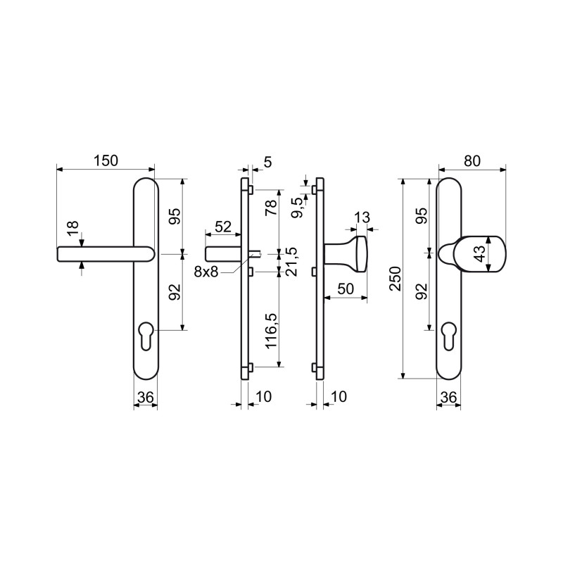 - pro tloušťku dveří: 72 - 92 mm