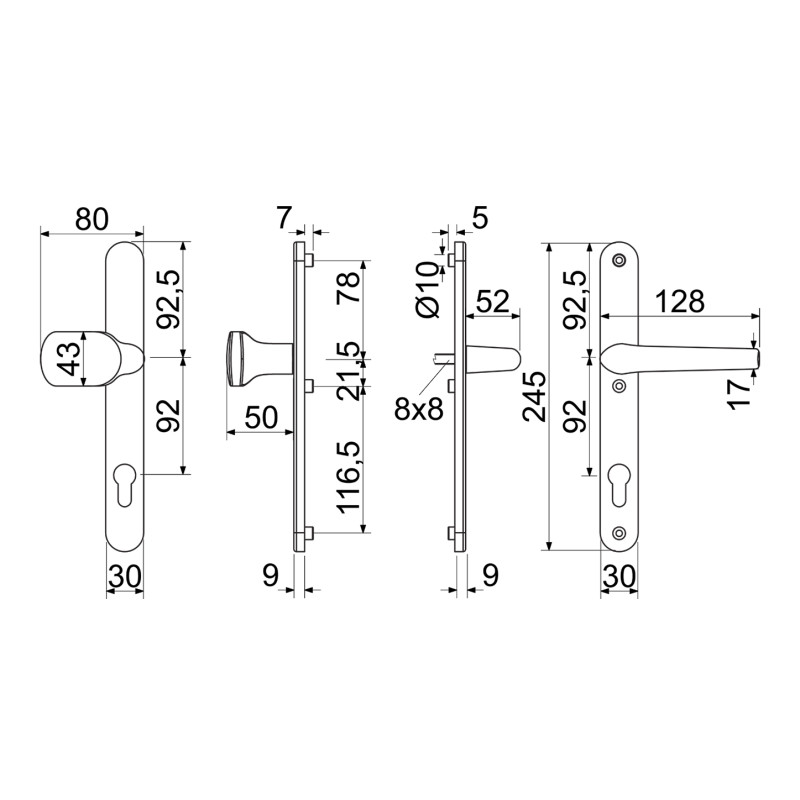 - 1 ks štít s klikou + 1 ks štít s madlem