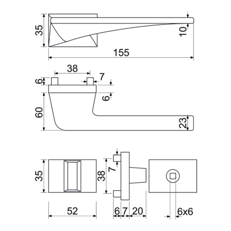 Balení obsahuje komplet na jedny dveře - pravá a levá klika, dolní rozety na WC + spojovací materiál, vrtací šablonu a návod k montáži. V provedení WC, balení obsahuje čtyřhran o velikosti 6 x 6 mm a redukci 6/8 mm.
