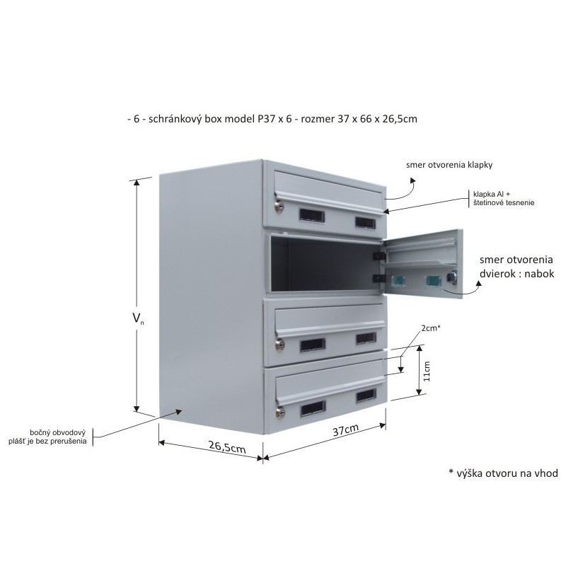 - - 6 - schránkový box model M37/6 - rozměr 37 x 66 x 26,5cm / modul obsahuje 6. schránek