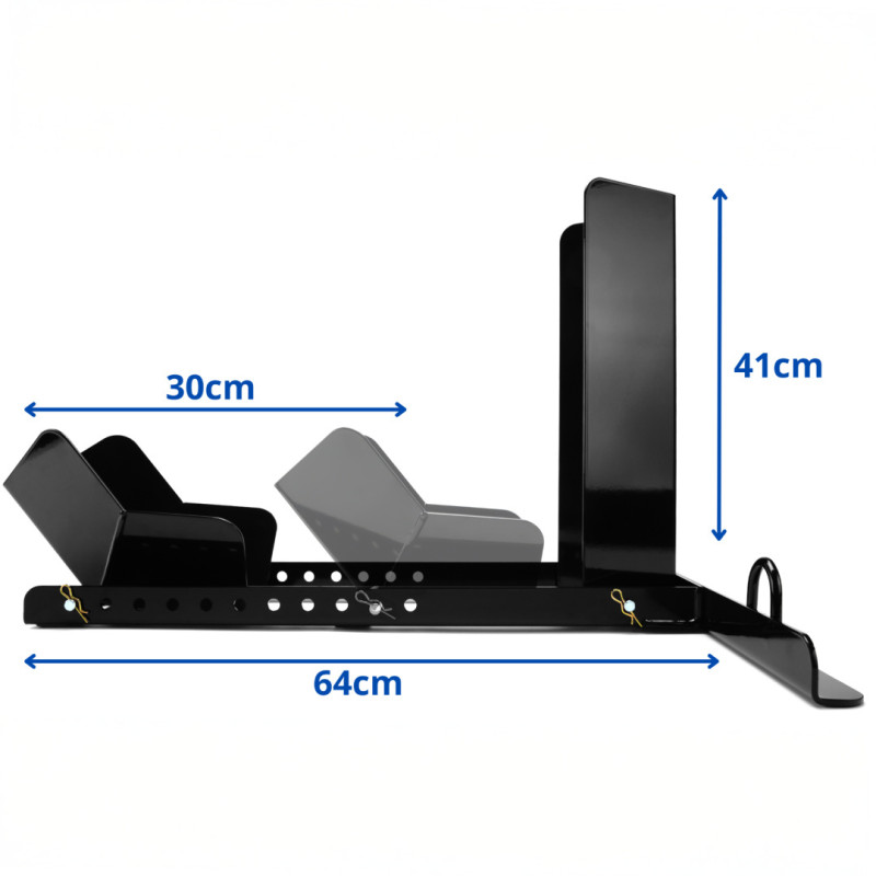 Univerzální motocyklový stojan SN1719 je praktickým řešením pro bezpečnou přepravu motocyklu na přívěsech či vozíkech. Poskytuje stabilní uchycení předního kola, je nastavitelný a díky pevné ocelové konstrukci s ochranným nátěrem zaručuje dlouhou životnost a spolehlivost.