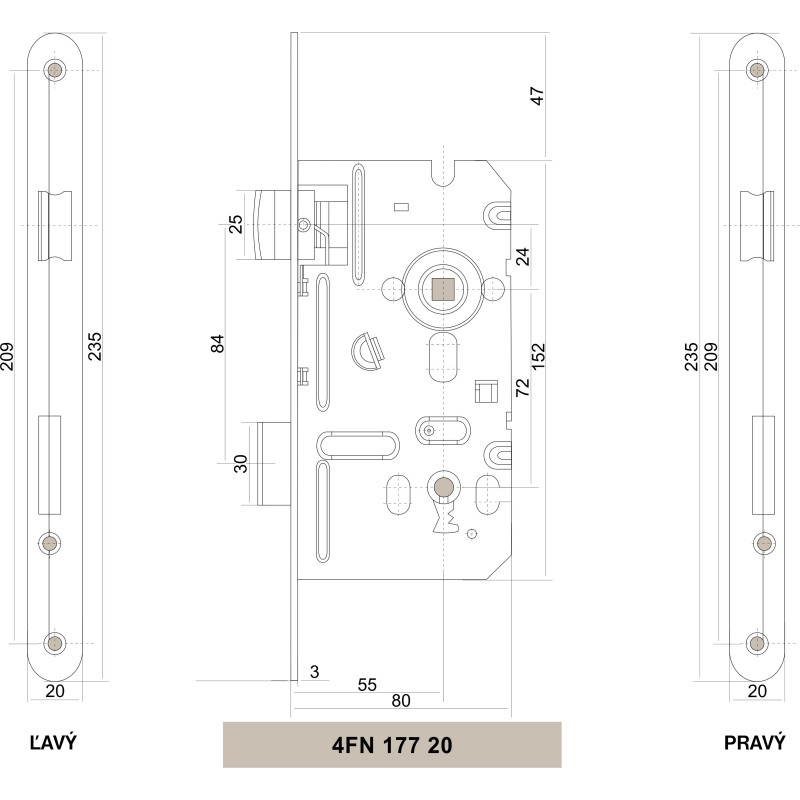 Stavební zadlabací zámek na klíč