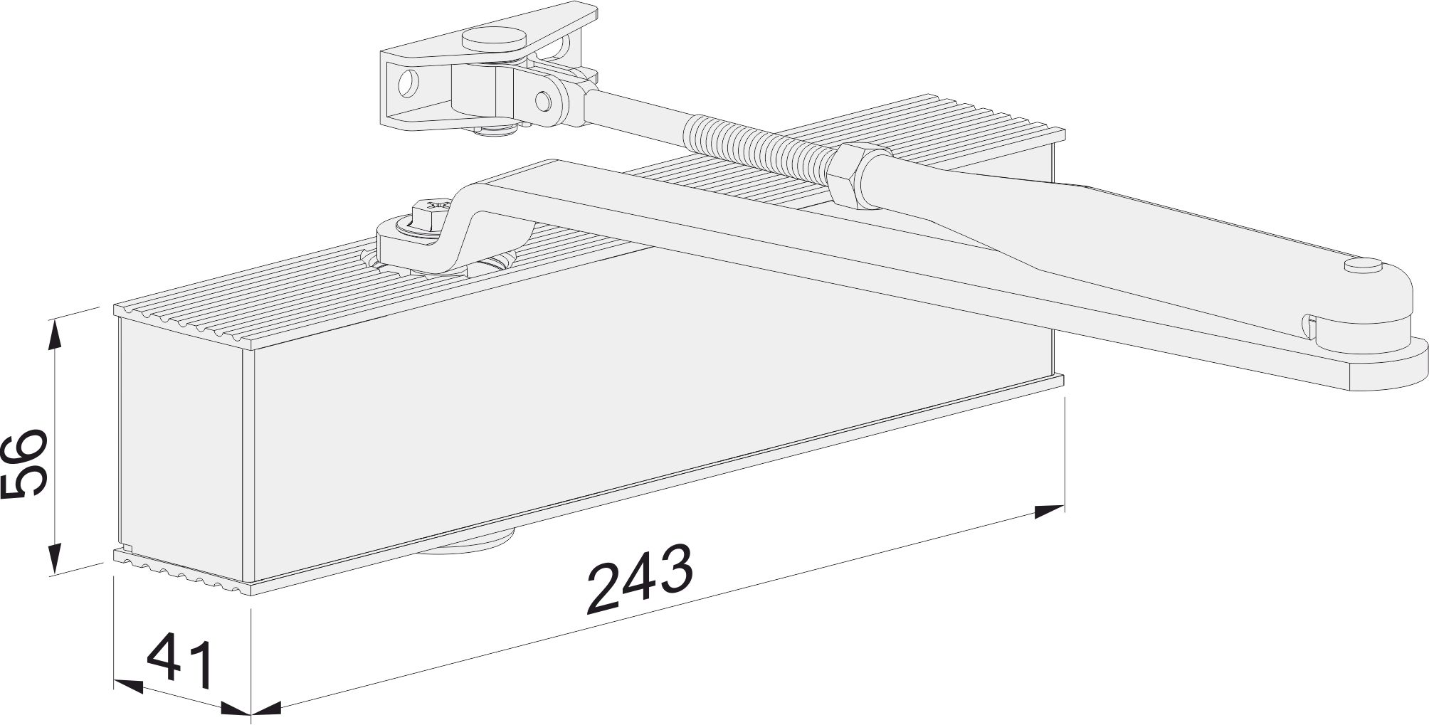- Obsah balení: TS-20 : tělo zavírače dveří, standardní rameno, montážní návod a upevňovací šrouby